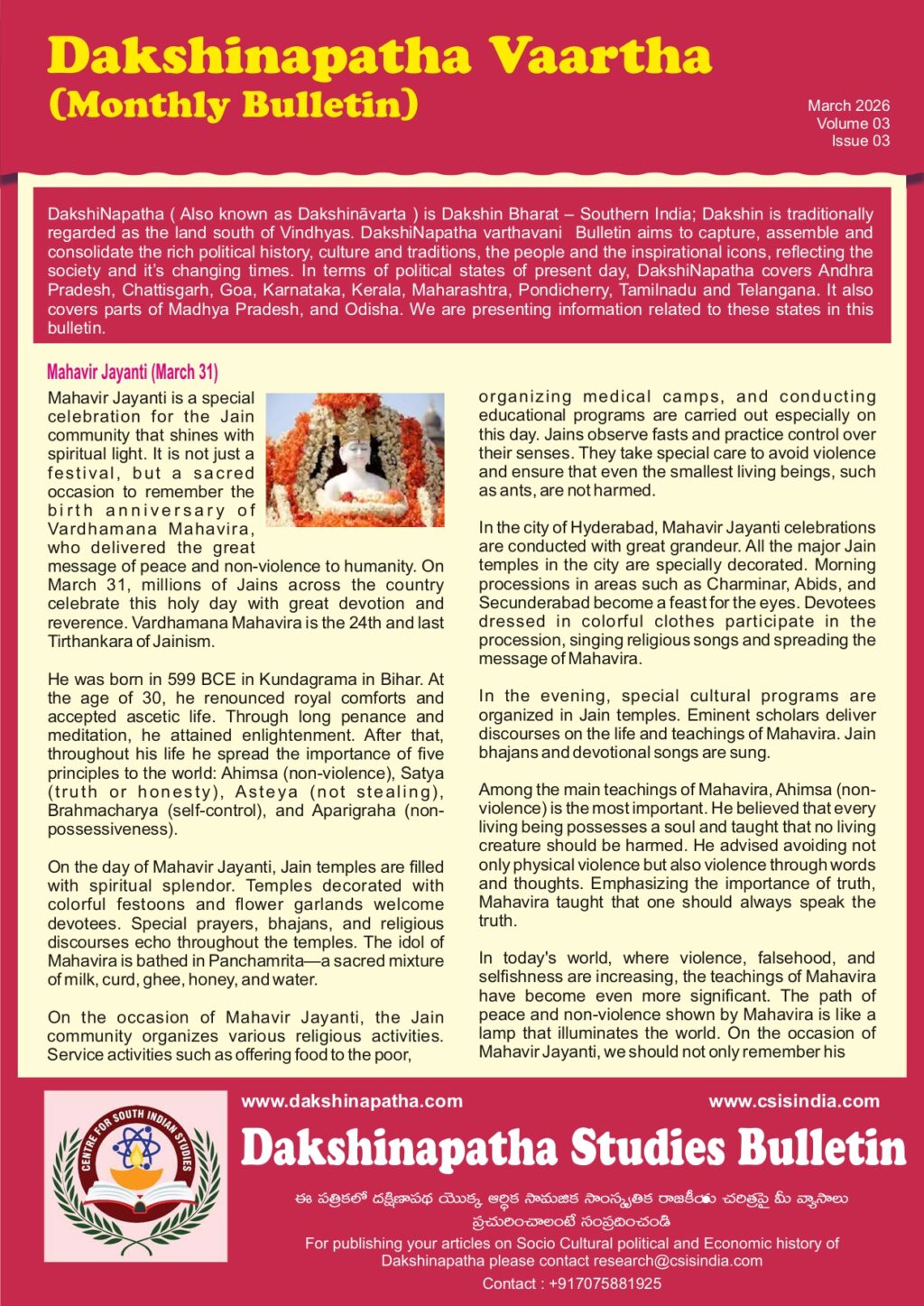 Dakshinapatha Vaartavani Monthly Bulletin October 2025