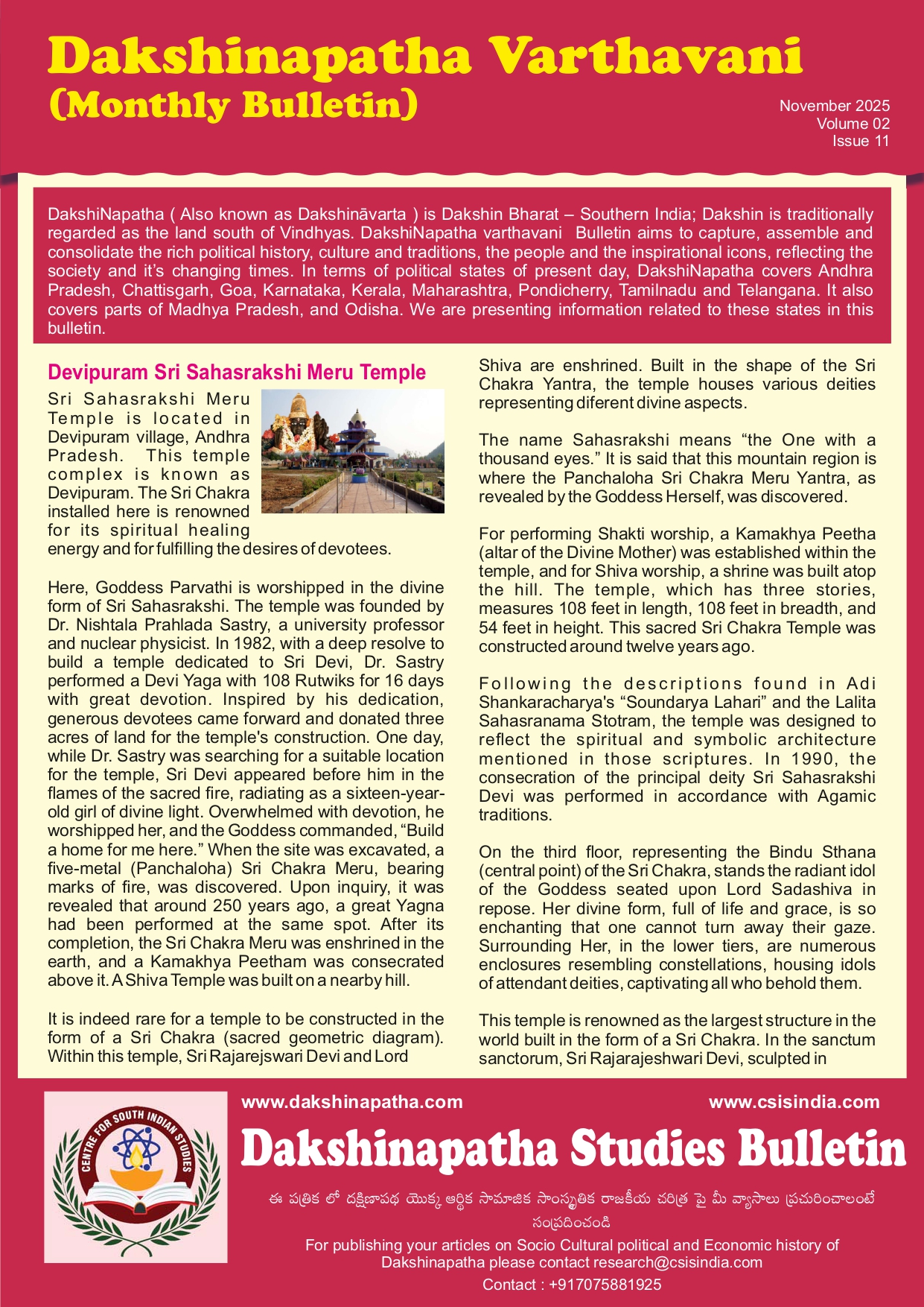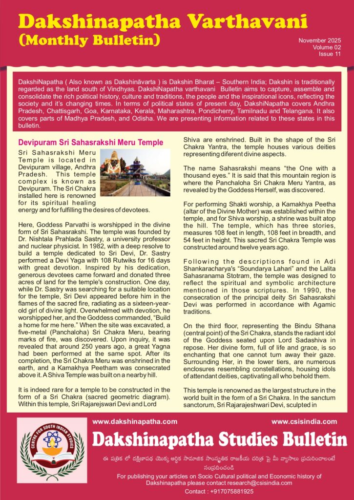Please read the full Bulletin here- November 2025 Tags: csis November November 2025 Vaartavani Continue Reading Previous Dakshinapatha Vaartavani News Bulletin October 2025 Leave a Reply Cancel replyYour email address will not be published. Required fields are marked *Comment * Name * Email * Website Save my name, email, and website in this browser for the next time I comment. Δ More Stories Publications Dakshinapatha Vaartavani News Bulletin October 2025 Publications Dakshinapatha Vaartavani News Bulletin September 2025 Publications Dakshinapatha Vaarta News Bulletin August 2025